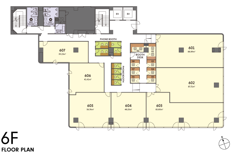 天然木タイルの暖かい雰囲気もしくは力強い躯体現しフロアのシンプルでスタイリッシュなインテリア。 基準階天高3m超の開放的で明るい個室空間。最小13㎡から30㎡を中心としたSMALL OFFICEから 事業成長時期にちょうどいいサイズのMIDDLE OFFICE、最大270㎡のテラス付きPREMIUM OFFICEまで。 RandL内で中長期的な腰を据えたビジネスが可能です。 共用インターネットも引込済みで、入居後のタイムロスも心配ありません。全ての共用スペースと入居者サービスを利用可能です。